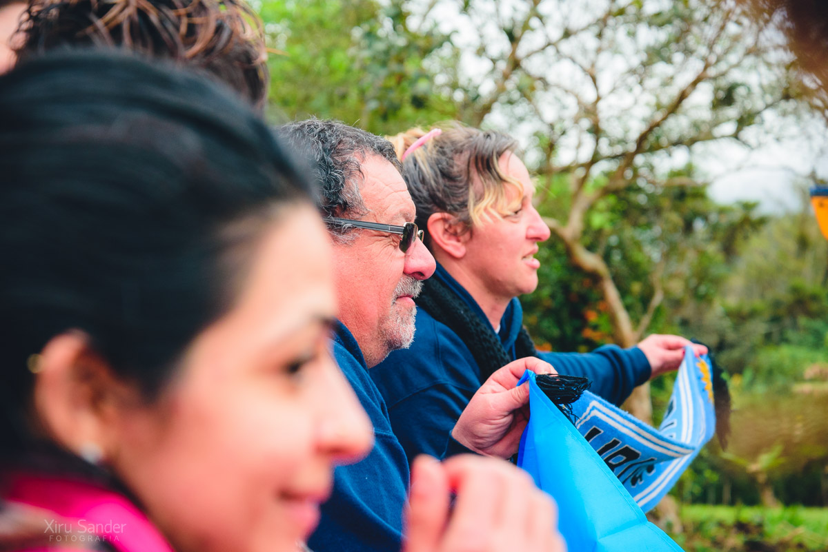 Fomos pensando em quem faltava, coletando informações... Ficamos sabendo que 7 pessoas ainda estavam na água. Fizeram um grupo com alguns remadores mais rápidos para tentar buscar 2 desses 7. Outros 5 já estavam em terra, mas lá no Areião de Capão. Eles tiveram problema com um barco que encheu de água e um remo que afundou... Tiveram que ficar por lá. Mas pelo visto passaram super bem...