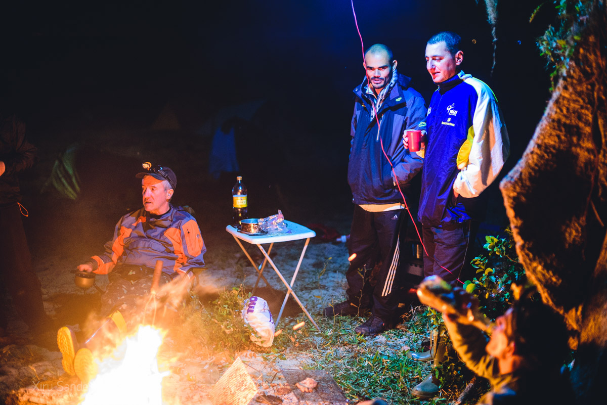 Depois do susto, a noite foi legal, mesmo o grupo tendo ficado parcialmente separado... Eu estava bem cansado e fui dormir um pouco. Depois acordei, confraternizei um pouco com o pessoal e voltei pra barraca... A turma seguiu... Podemos resumir a noite em uma leve chuvica, muito vinho e cachaça, carne e fogo de chão... A chuvica rolou a noite toda...